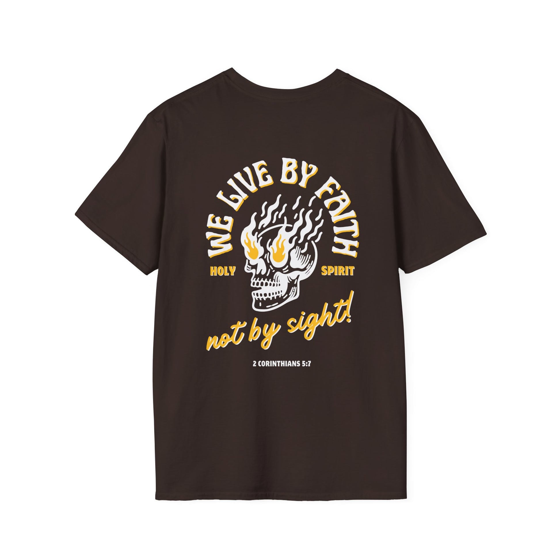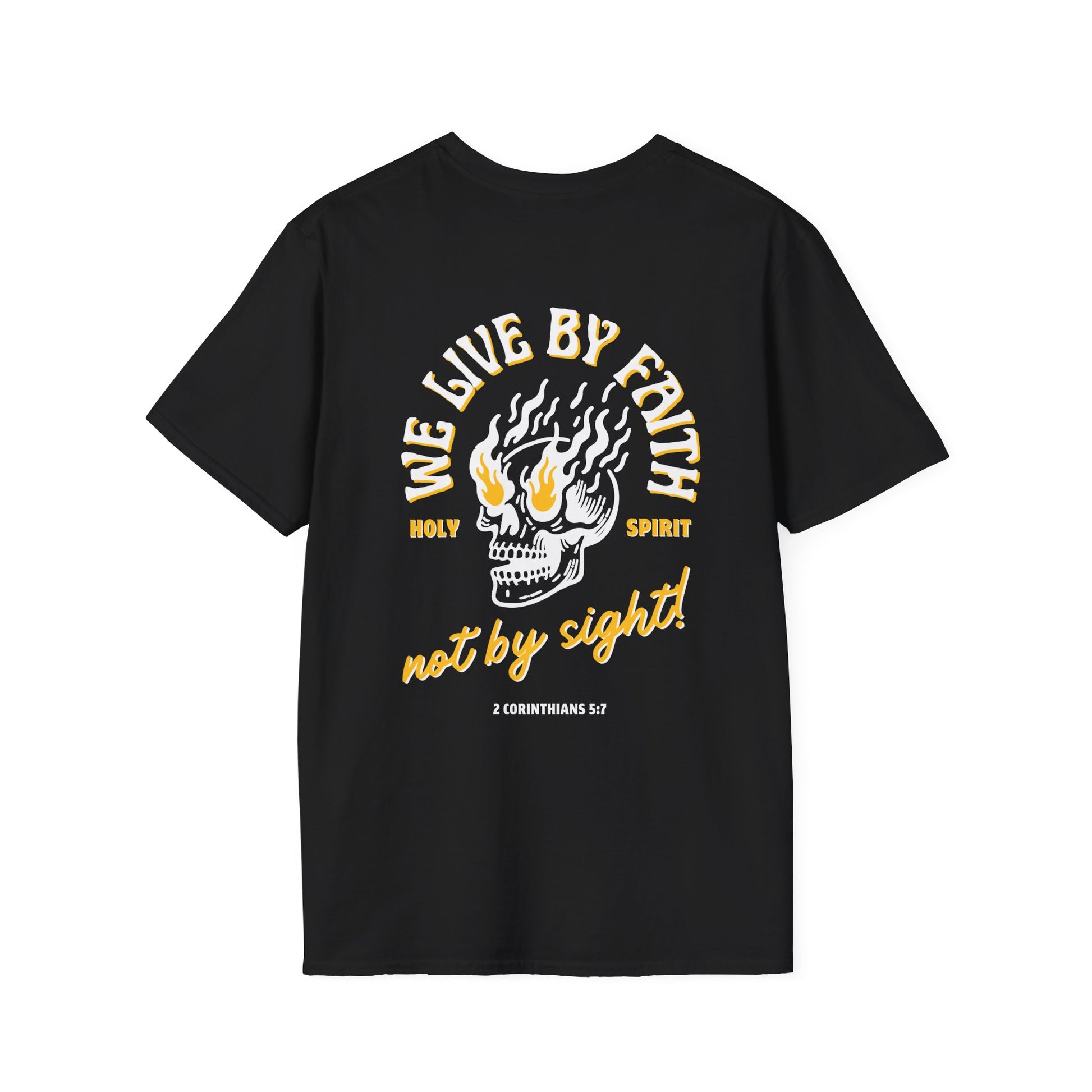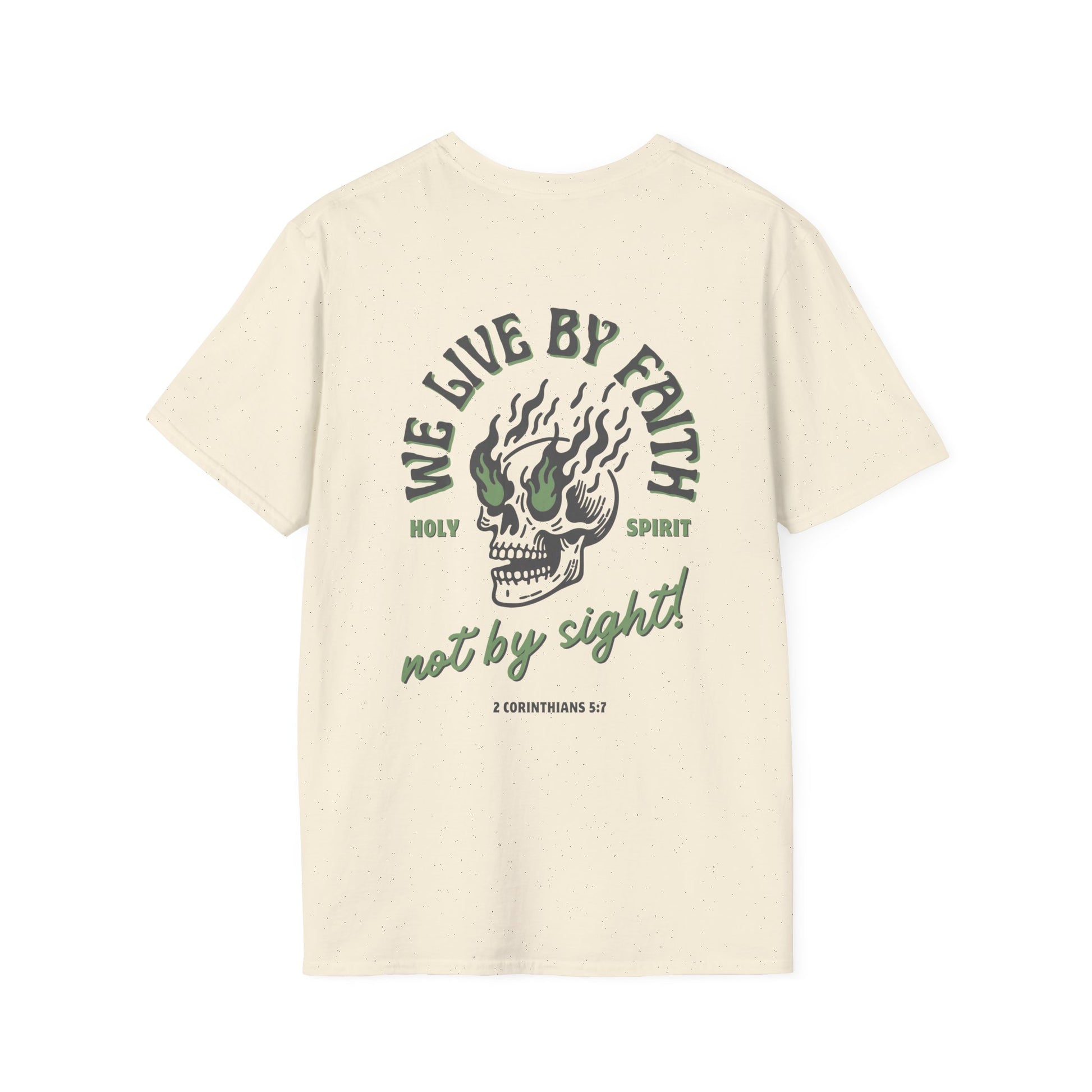 EMBRACE YOUR FAITH WITH OUR "LIVE BY FAITH" T-SHIRT, INSPIRED BY THE POWERFUL VERSE FROM 2 CORINTHIANS 5:7 "FOR WE LIVE BY FAITH, NOT BY SIGHT." THIS SHIRT SERVES AS A DAILY REMINDER TO TRUST IN THE UNSEEN AND TO HAVE FAITH IN GOD'S PLAN.