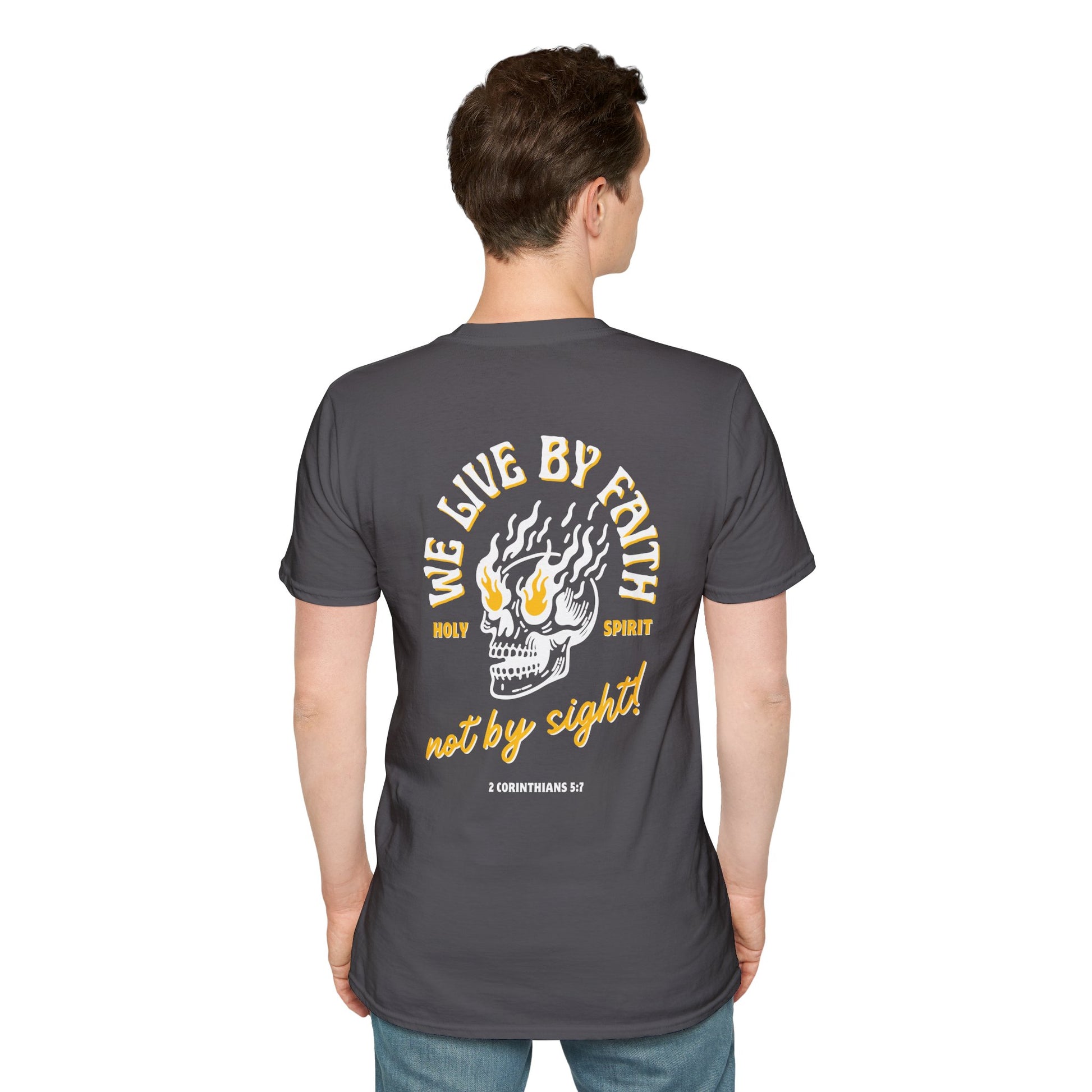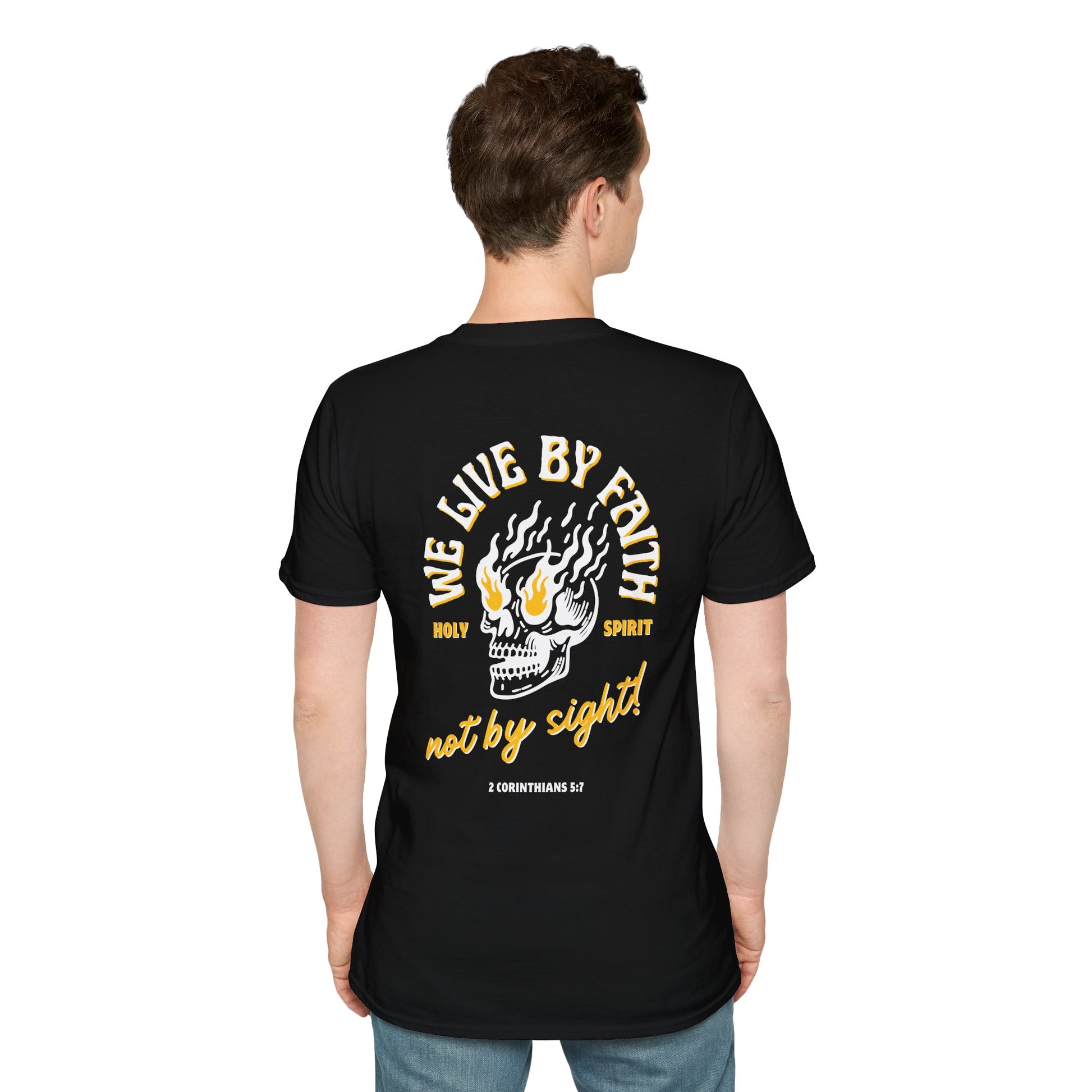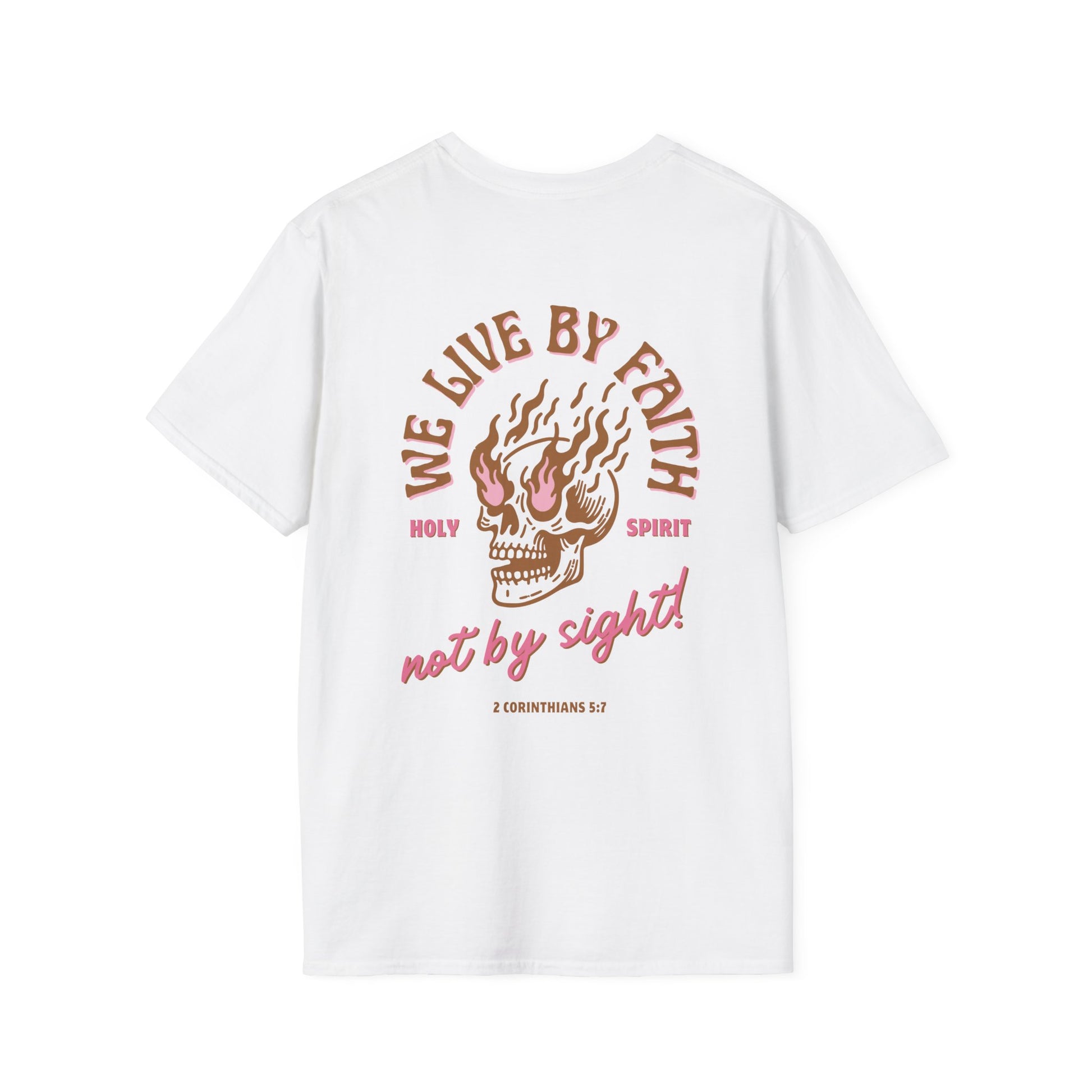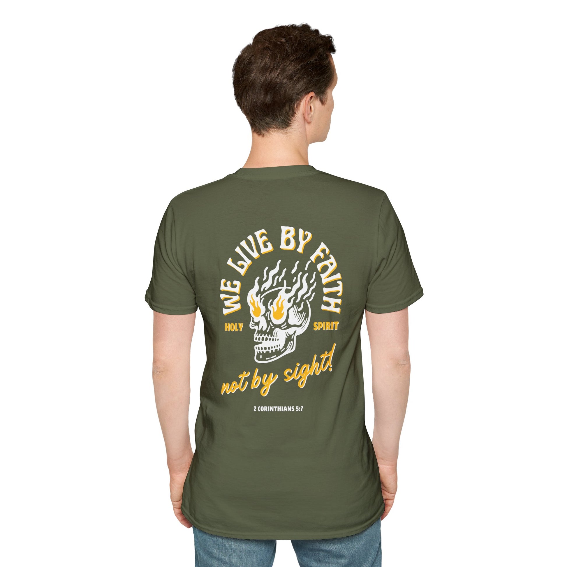 EMBRACE YOUR FAITH WITH OUR "LIVE BY FAITH" T-SHIRT, INSPIRED BY THE POWERFUL VERSE FROM 2 CORINTHIANS 5:7 "FOR WE LIVE BY FAITH, NOT BY SIGHT." THIS SHIRT SERVES AS A DAILY REMINDER TO TRUST IN THE UNSEEN AND TO HAVE FAITH IN GOD'S PLAN.