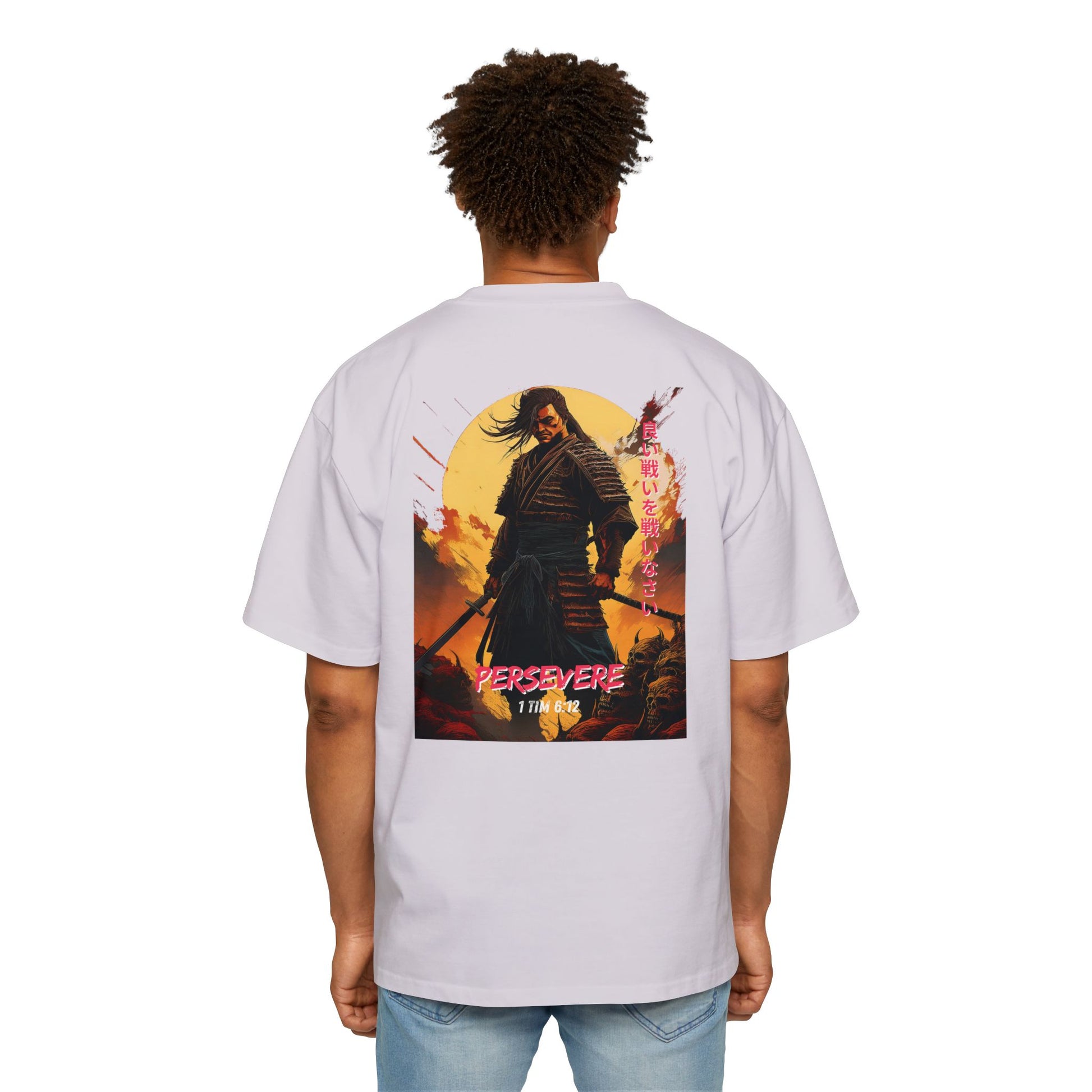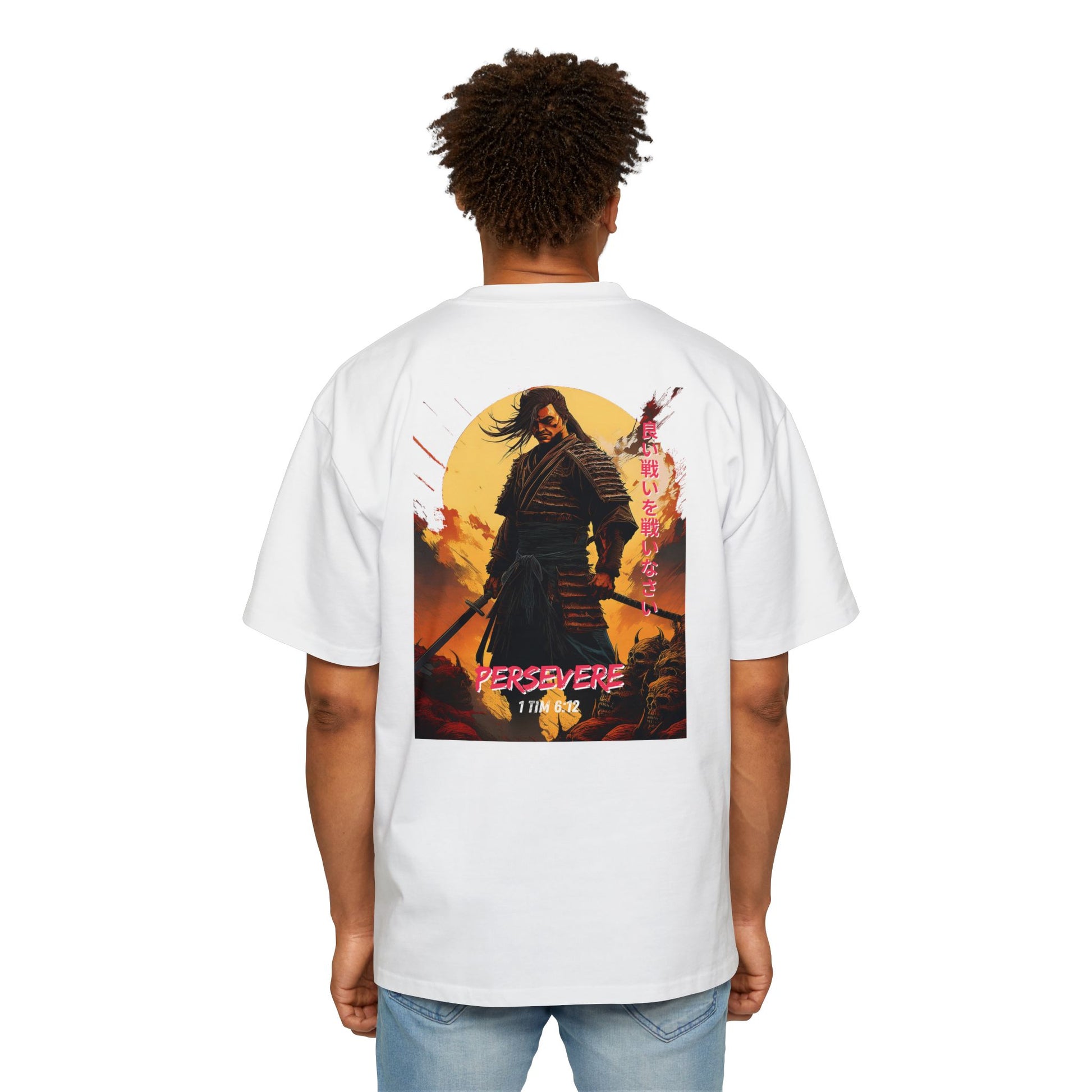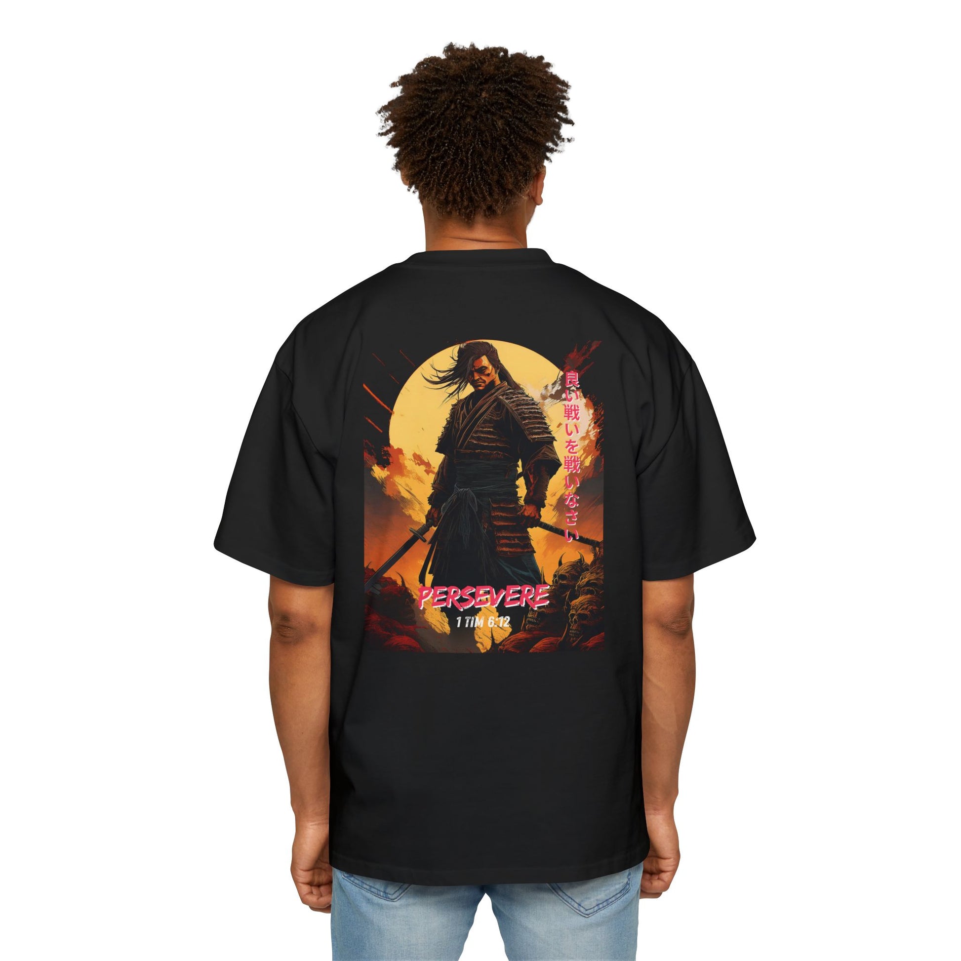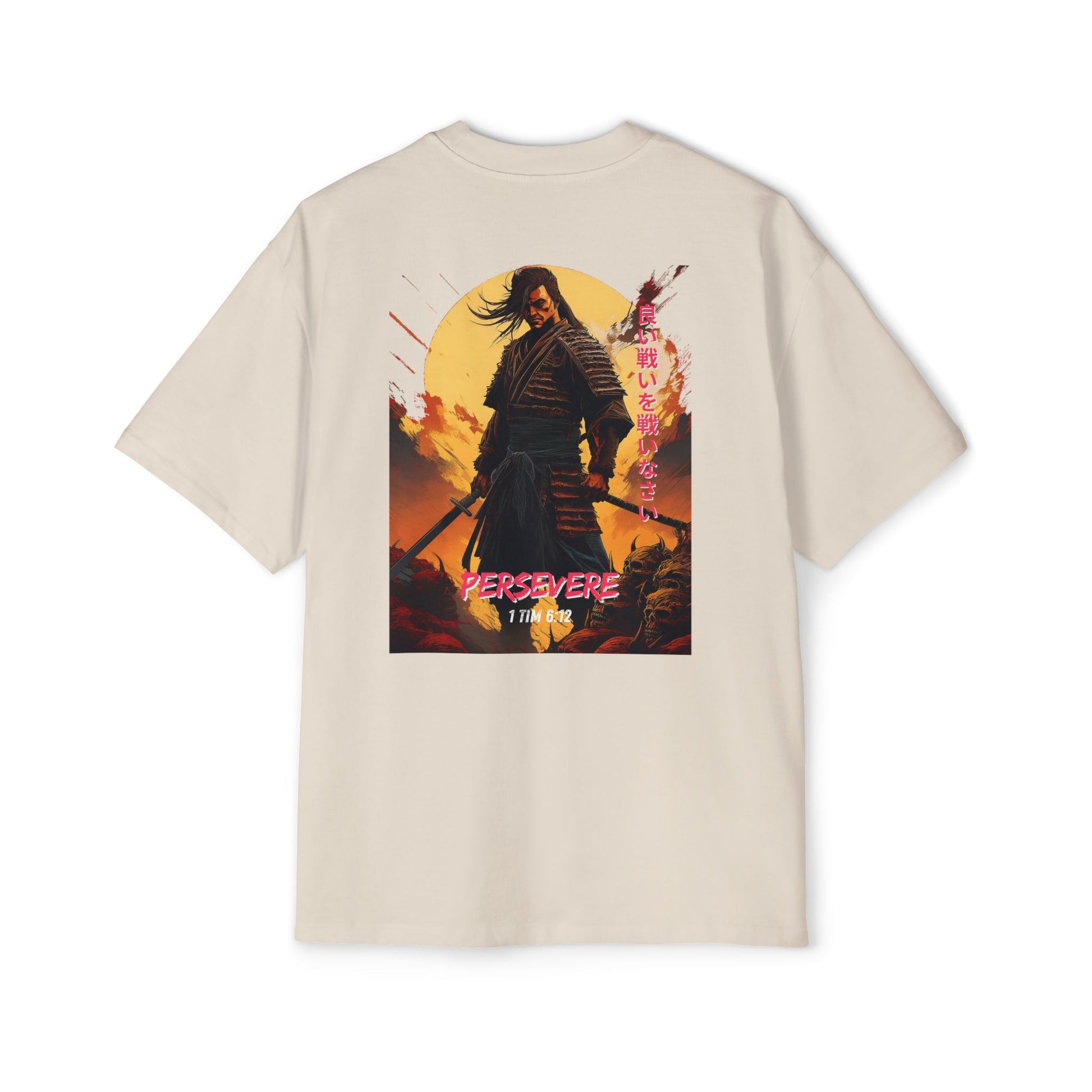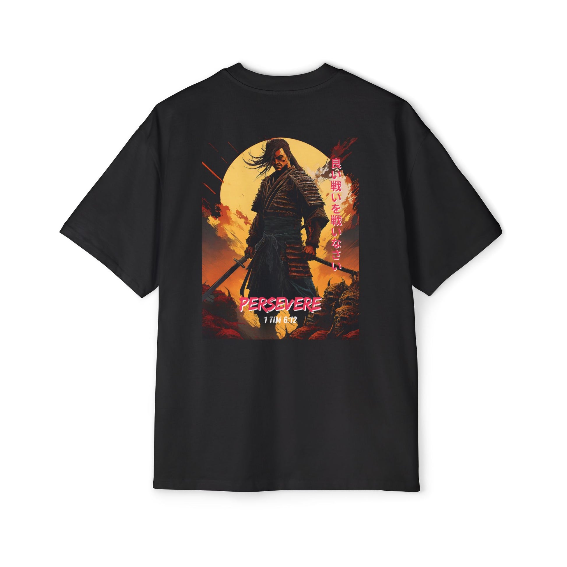 This isn’t Sunday school art — this is faith reimagined for the streets. Inspired by 1 Timothy 6:12, this design features a fierce, battle-ready warrior standing against a blazing sun, wrapped in the grit and glory of the fight. The Japanese text 良い戦いを戦いなさい (“Fight the Good Fight”) cuts across the design, giving it a raw, underground anime vibe.
