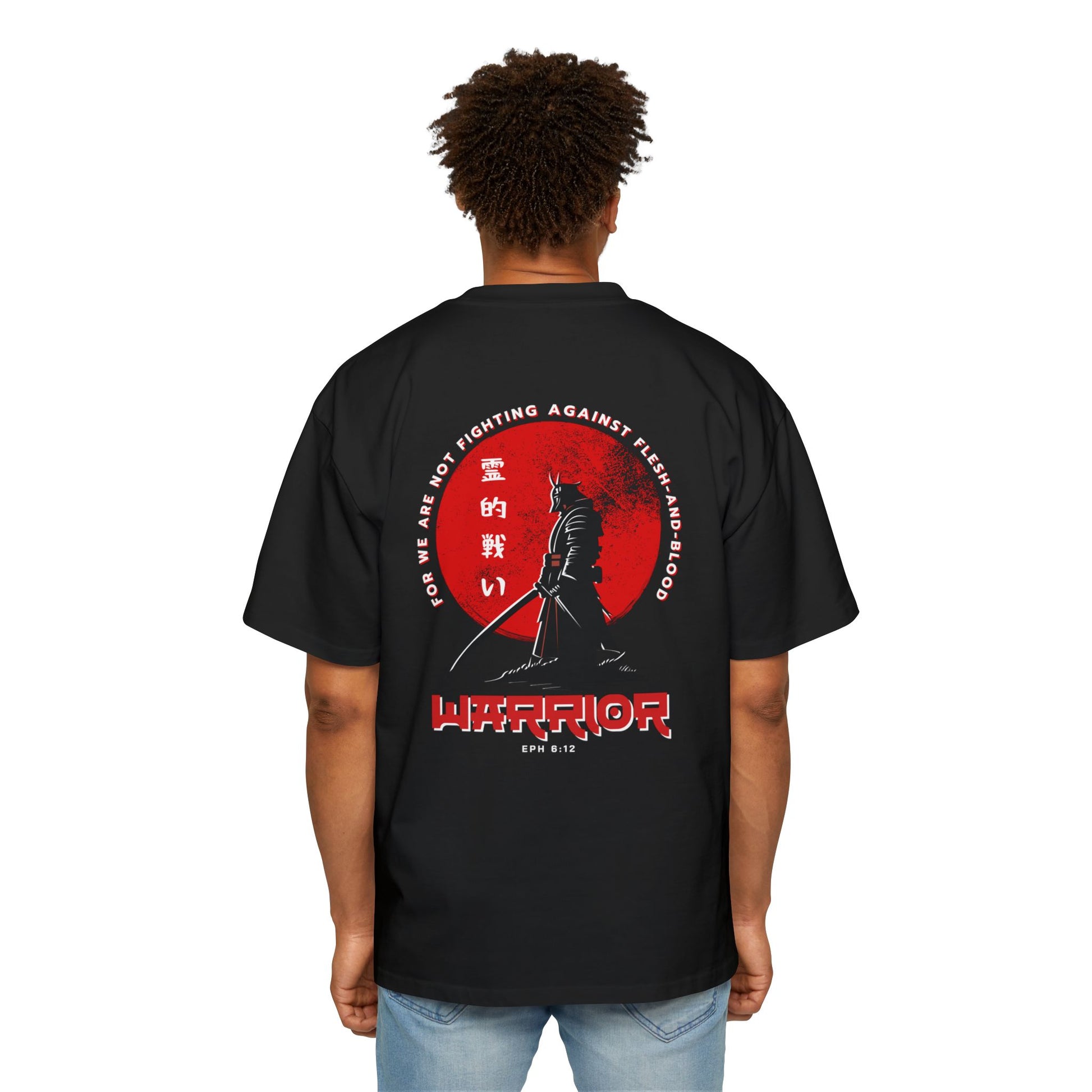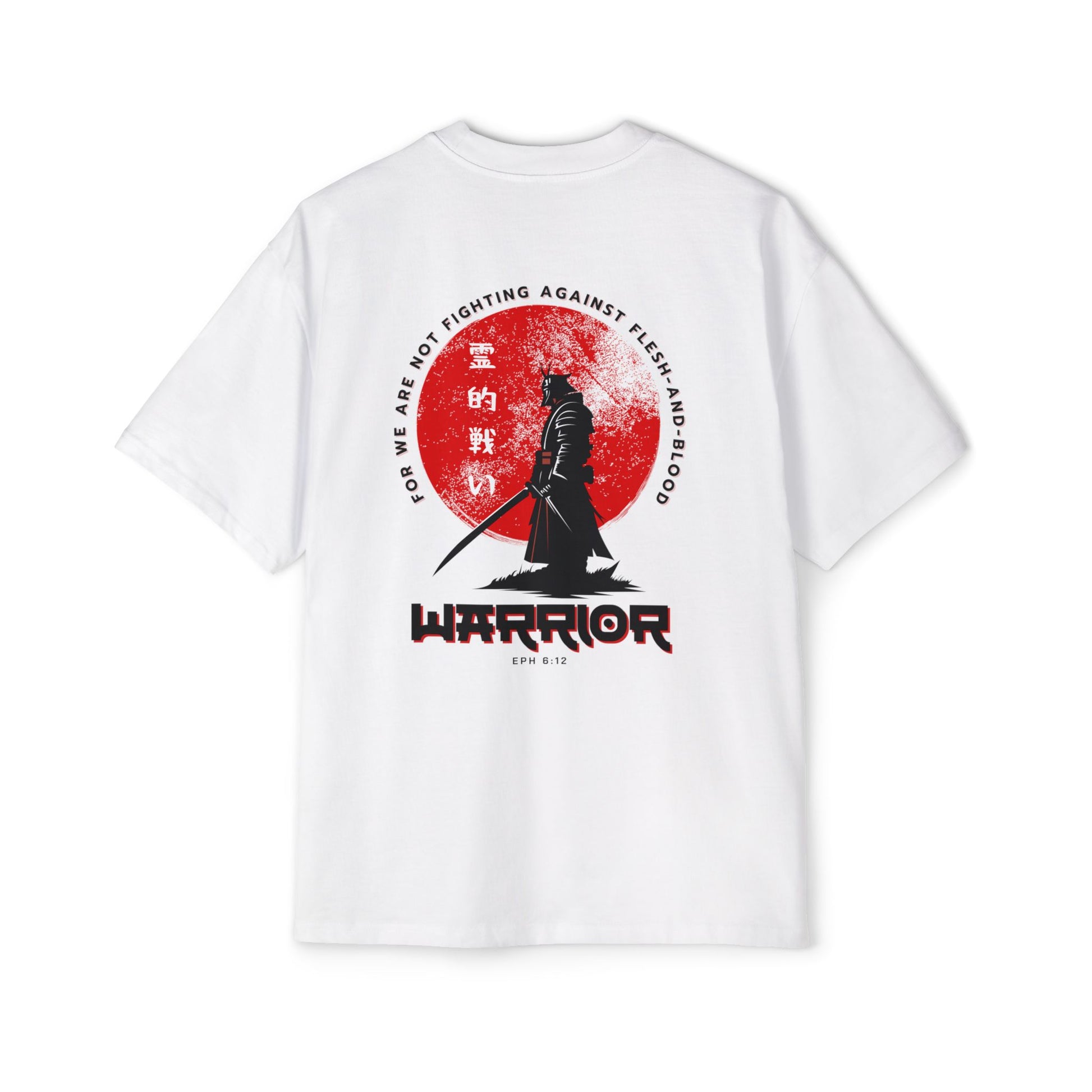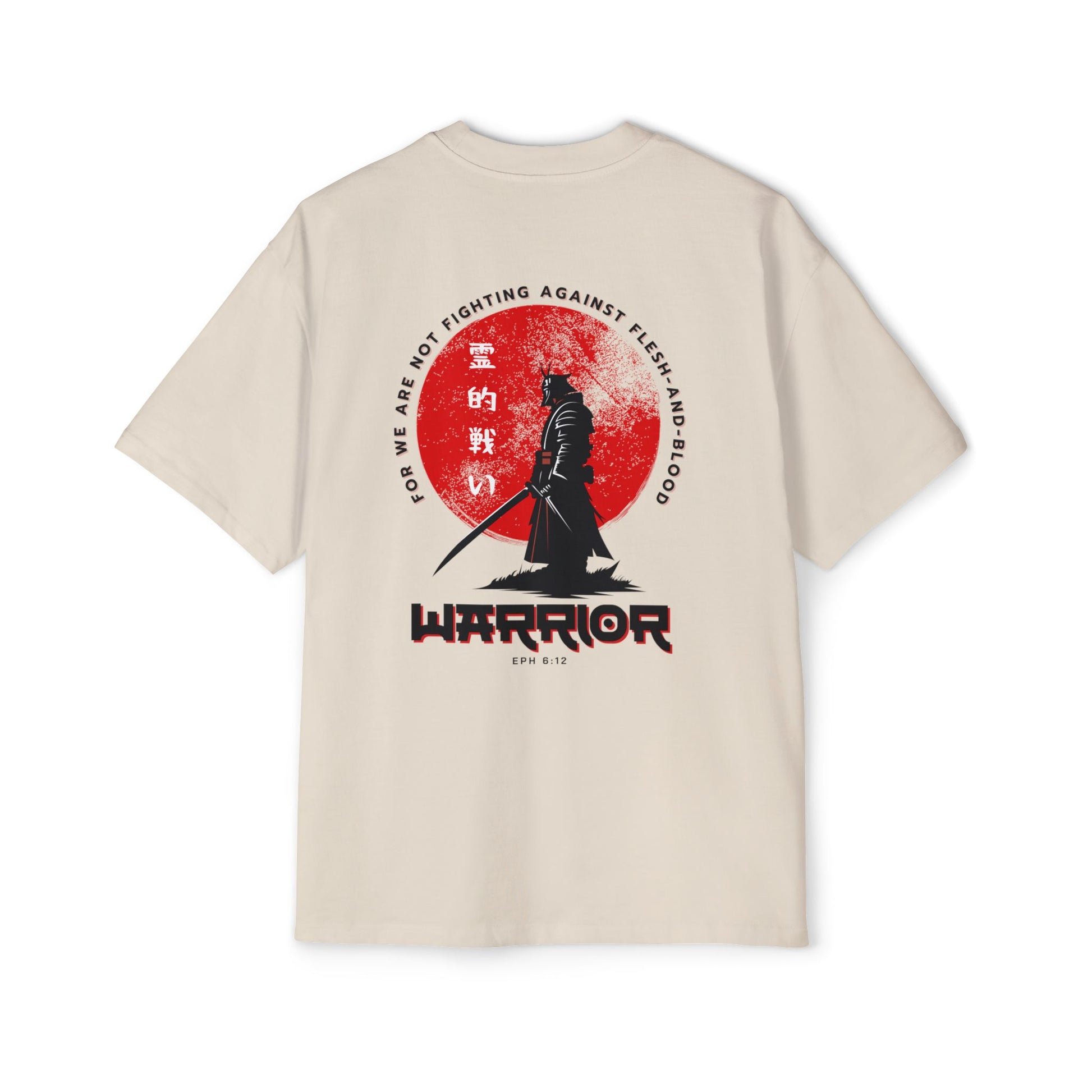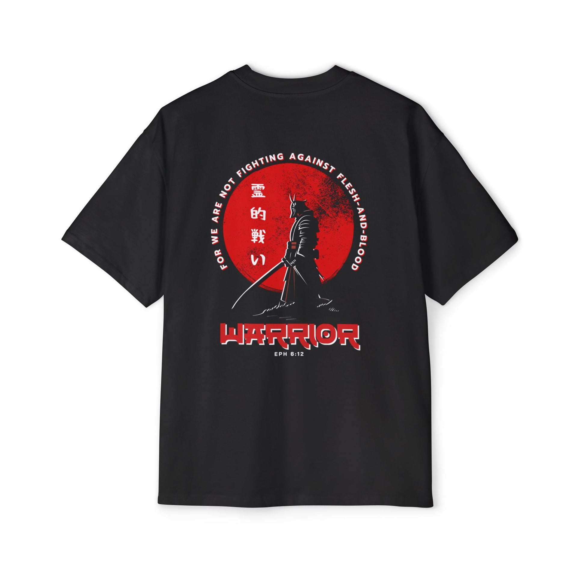 Inspired by Ephesians 6:12, this bold design is a call to stand firm in the unseen battle. Featuring the words "Spiritual Warfare" in striking Japanese kanji (霊的戦い), this shirt is a reminder that our struggle is not against flesh and blood, but against spiritual forces of darkness.